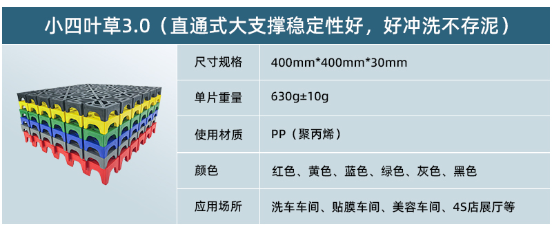 5、窄筋面層,易潔不存水實(shí)用性強(qiáng),美觀好用性價(jià)比高。 6、每片產(chǎn)品印有LOGO,售后無(wú)憂,高抗沖擊材料,質(zhì)保五年更耐用