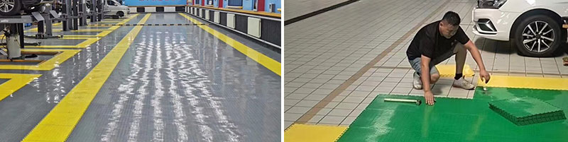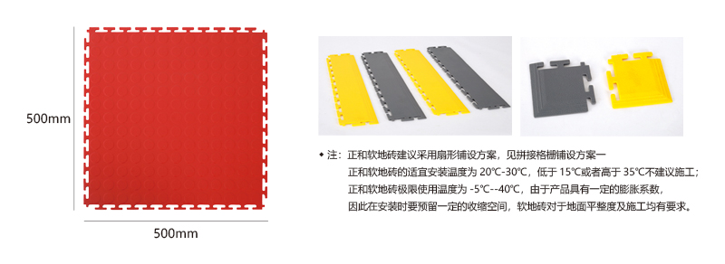 軟質(zhì)絕緣地板能將每個獨(dú)立的地板快速拼裝成整體地面,專利型鎖扣結(jié)構(gòu)連接能力更強(qiáng),可承受叉車的來回碾壓。施工過程中無需膠黏劑等材質(zhì),具有施工簡單快速、色彩絢麗、美觀大方、可移動性強(qiáng)、可重復(fù)使用等特點(diǎn)。