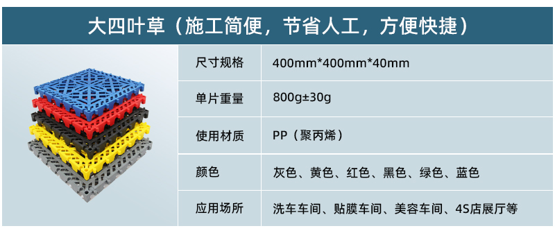 正和大四葉草產(chǎn)品厚度為40mm,是2018年正和公司最新開發(fā)的全新洗車車間專用產(chǎn)品。